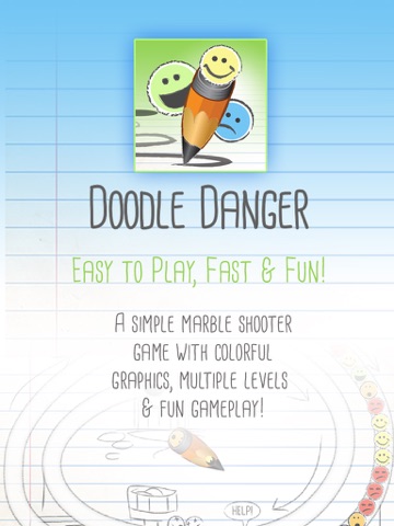 Doodle Danger is a simple and addictive game to try and complete levels (stages). Control a pencil cannon to fire off at least three similar smiley faces. You have to stop the faces from reaching the hole in the paper. This is a simple and very addictive match 3+ game.