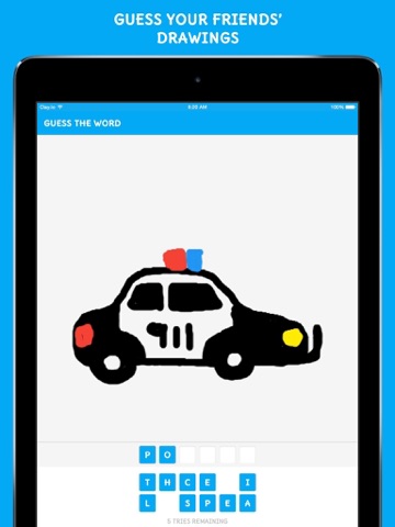 Great game just like draw something, however when watching your opponent draw it shows what they drew until they lift their finger up. It then disappears and you see what they drew next etc so in the end there is nothing to see. The only time I see their actual drawing is in the messenger app when they send the drawing asking you to guess. Also sometimes your drawing doesnt disappear so when your opponent starts drawing its over top of your previous drawing. And since their drawings disappear youre left with your own photo or a blank page.