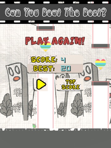 Tap on your device to make the awesome Doodle Glide. Avoid obstacles and most importantly beat your friends high score.