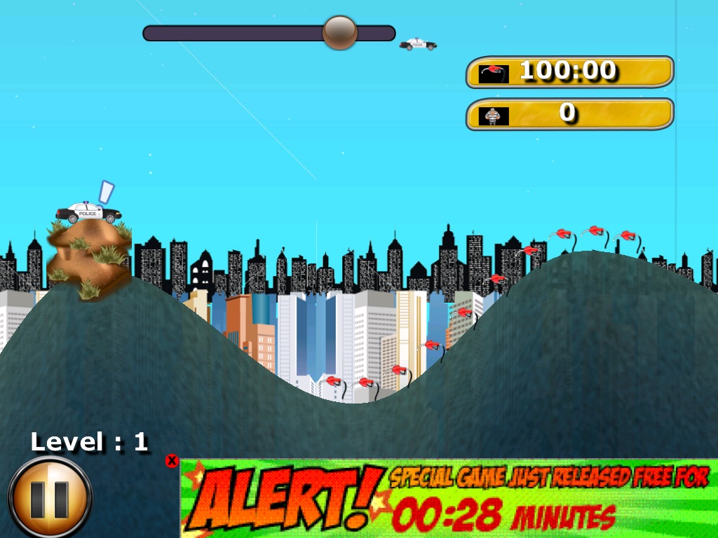 Get your hands on some fun doodle police car hill racing action! Tons of levels!!! Super easy touch controls. Very addicting! Touch the screen to accelerate the police car when going downhill. Release when going uphill to launch your car into the sky! Super fun, super fast! Game Center for high scores! Download for FREE today!