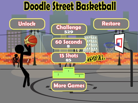 Doodle Street Basketball game has 3 modes to play: Challenge , 60 Seconds, 15 Shots