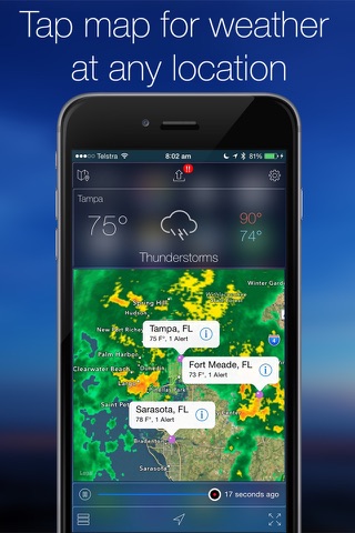 Overall, this is a very good weather app. Layout is nice, and the radar is very bright and easy to see. One minor issue is that when the app is started, it shows the map and then shuts down. Restarting the app a second time, everything then works ok. A minor problem, but hopefully will be corrected in a future fix.