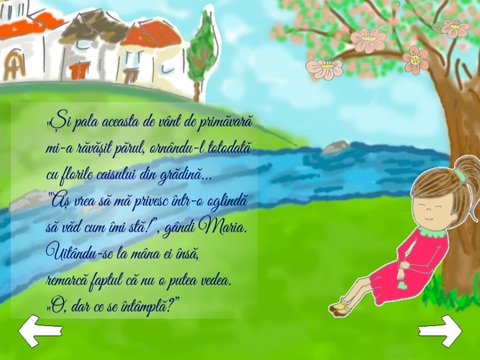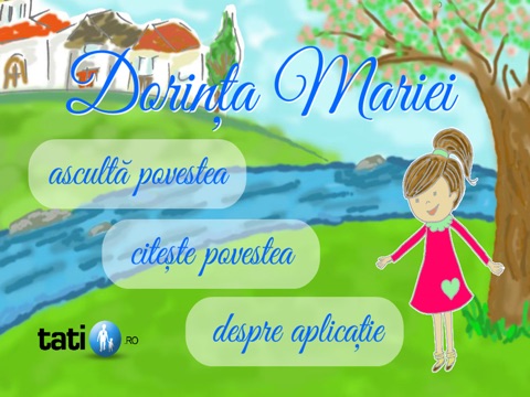 Aplicatia ofera doua posibilitati de parcurgere a povestii: audio, unde povestea este narata cu drag chiar de autoare si alta cu text, oferind varianta in care ii poti citi copilului tau aventura Mariei, inainte de culcare.