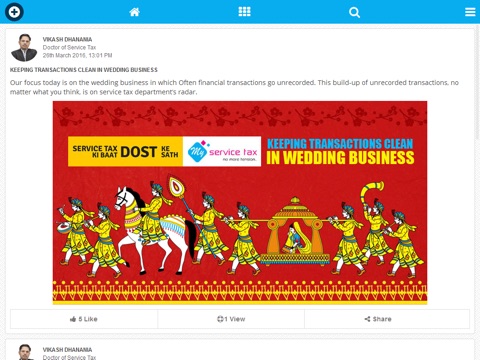 DOST Vikash Dhanania, winner of prestigious Haryana Pratibha Puraskar is a renowned name in Service Tax who completed CA in 2001. He is an eminent multi lingual speaker at taxation-related seminars and his concept SERVICE TAX ADDA has caught attention of all.