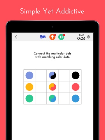 The Goal is to connect the same color dots until the entire board is filled with beautiful color lines. The challenge increases gradually with harder levels & new twists like bridges between the flow.