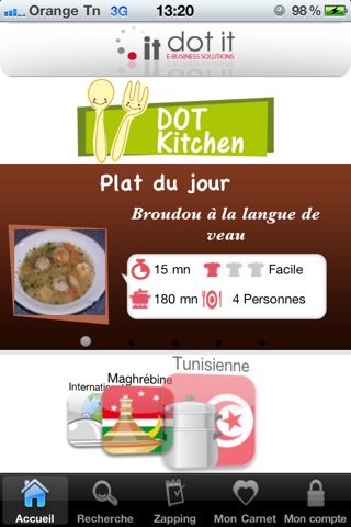 Découvrez les saveurs de la cuisine Tunisienne, grâce à DotKitchen. Une application gratuite qui met à votre disposition plus de 2500 recettes (Tunisiennes, marocaines et internationales).
