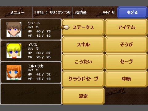RPGで言うところの「しらべる」や「はなす」は画面のどこか(メニューボタンや操作パッド以外の場所)を適当にタップすることで行えます。
