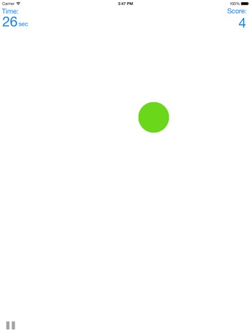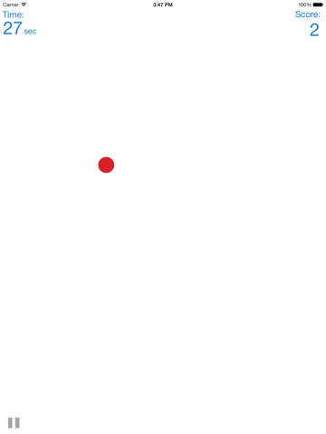 A dot will appear in a random placement on the screen. Your job is to tap it as quickly as you can! Once tapped, another will appear somewhere else on the screen. See how many dots you can tap in 30 seconds! You must be accurate to get as many as possible!