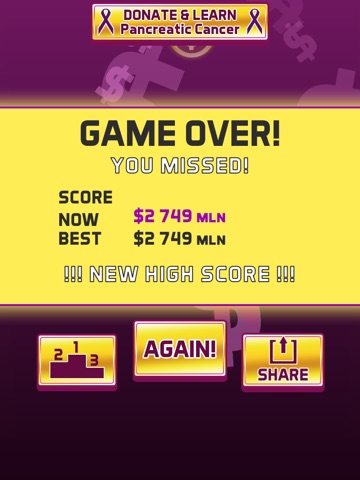 This game is difficult and addicting. Side effects may include happiness, life improvement and ultimately doubling your money (at least virtually)... Plus, a feel good factor of helping us raising awareness for Pancreatic Cancer.