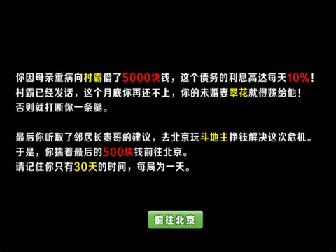 在游戏中你为了救出翠花,携带500元去往北京玩斗地主赚钱,