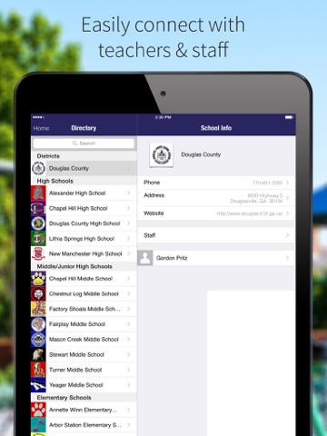 The Douglas County School System app gives you a personalized window into what is happening at the district and schools. Get the news and information that you care about and get involved.