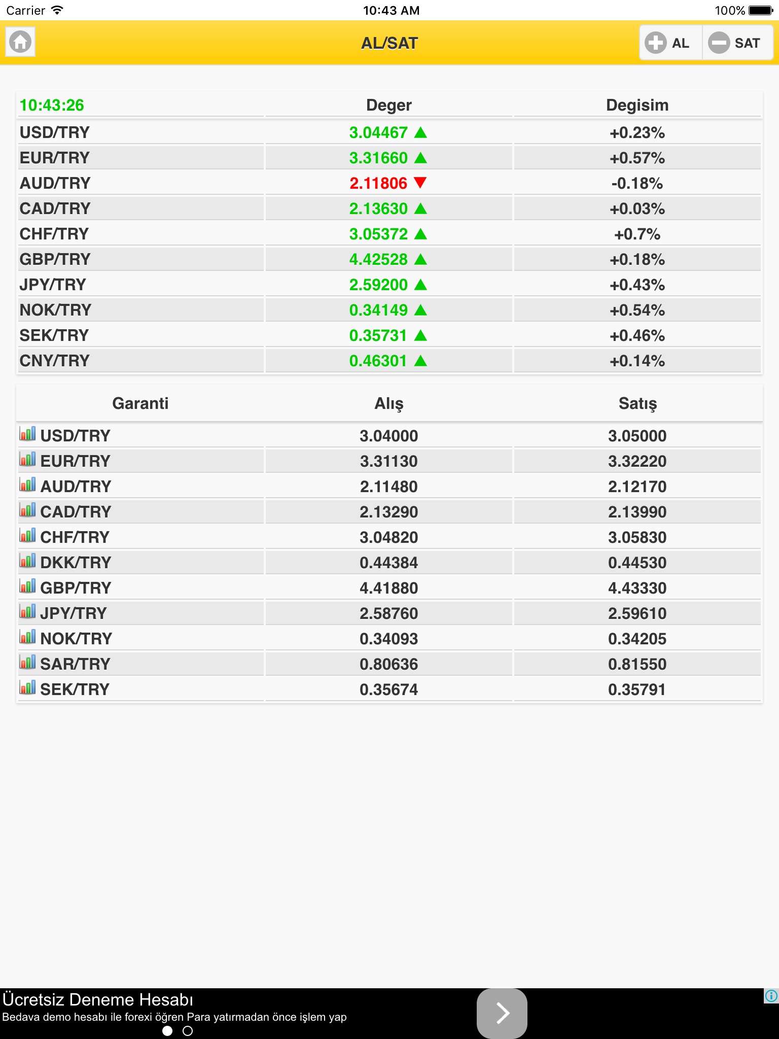 Döviz kurlarını istediğiniz seviyeye geldiğinde AL SAT pozisyonu açmanız için size hızlı davranmanızı sağlayacak mobil yazılımdır.