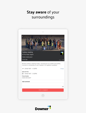 The Downer app makes it easy for you to report information, and for you to be aware of the risks near you.