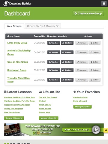With the Downline Builder app, registered members will have instant access to all materials and guides. Stay up-to-date on your iPhone or iPad with group news and events. Leaders can also create new curriculum sets on the go. If you dont have a Downline Builder account, you can visit our mobile-friendly website and sign-up today.