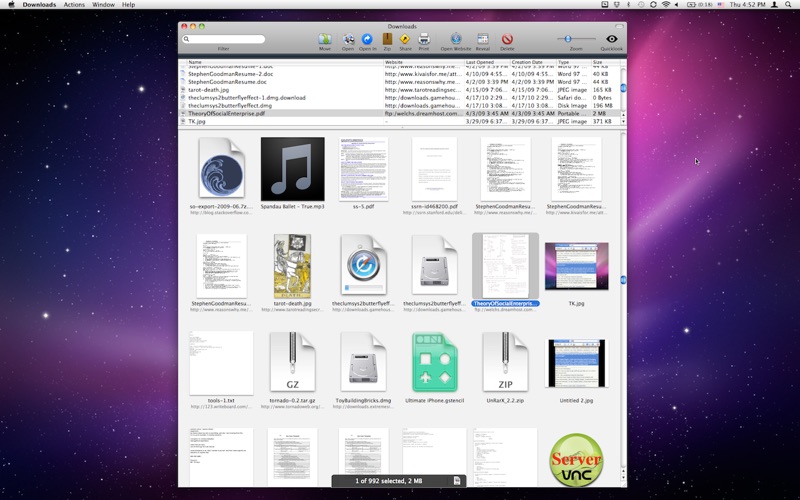 Ever had trouble finding that file you downloaded from the internet? Downloads is the perfect companion to your browser (be it Safari, Firefox, or another), especially webmail users. It provides a direct and intuitive view of all your past downloads so you can find (and use!) them and then get on with your life.