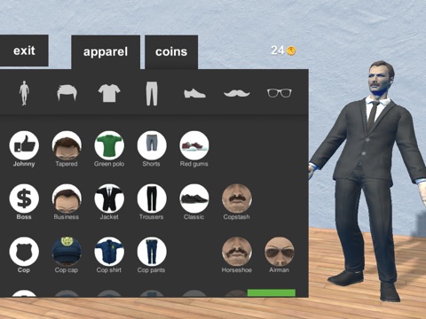 Customise your character and watch him fall downstairs.