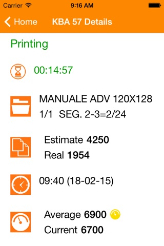 Check for each machine: current activity, job in progress, estimated and real quantity, expected end date and speed control (current and average).