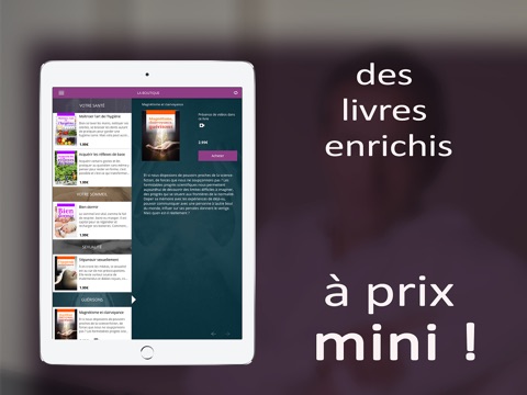 Régulièrement de nouveaux livres paraîtront. Vous pouvez être prévenu par « les mots du doc » qui vous orienteront vers un livre en particulier ou choisir vous-même à travers la thématique de votre choix, par exemple : « Bien s’alimenter et contrôler son poids », « Bien gérer son corps », « Améliorer son sommeil » ou encore « Rendre son cerveau solide et performant ».