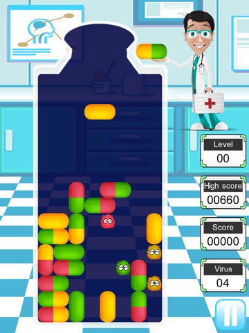 Use pills to clear the fever. Both pills and virus are blocks. Match four blocks with same color to eliminate a row or a column. Eliminate all viruses and you will pass the level.