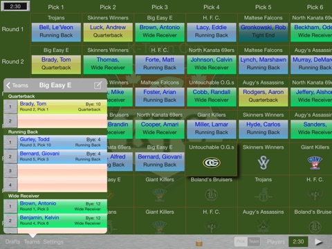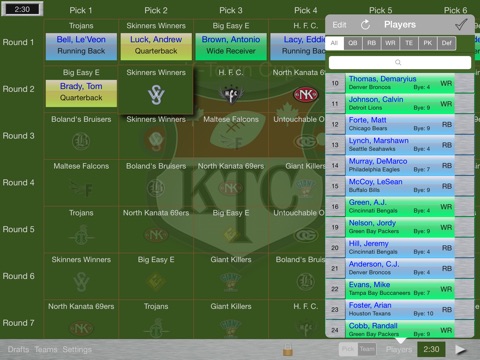 Because Draft Manager can utilize Game Centers turn-based system you can run your fantasy football draft all together in a single room, remotely, or even over the course of a week to fit into everyones schedule. Game Center is not required if you run your entire draft from a single device. Draft Manager also provides you the ability to draft multiple teams from the same device, which allows you to have multiple remote locations running off a single device per location.