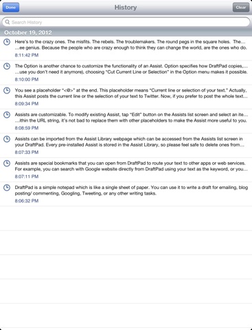 Ne fait quune chose très simple et très utile : vous aider à noter hypervite, puis, décider lutilisation du texte copier dans une autre app, mailer ou envoyer en SMS. Fait gagner du temps et évite des fausses manœuvres.