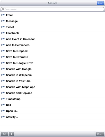 Le développeur a certainement de très bonnes intentions (lenfer en est pavé…) mais, sérieusement, lassistance dun graphiste pour pondre une interface de qualité (surtout sur l’iPad) est en envisager pour une version 2.0. Bref. Je préfère employer loriginal (payant de surcroit), à savoir Drafts qui a au moins le mérite dêtre agréable à lusage et posséder une barre additionnelle perfectible mais présente, une gestion des actions et des exports claire. Bref, de sadresser à des utilisateurs lambdas…