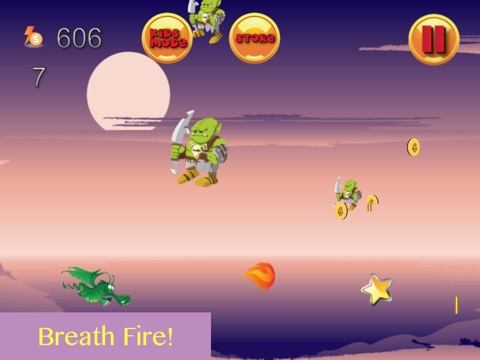 The ogres have destroyed the dragons lair in the Dark Kingdom! Help the lone dragon survivor find the others in an epic journey! Prepare yourself for the adventure of a lifetime as you use fire balls to destroy ogres and monsters, collect coins and power ups, and upgrade your dragon! Can you find the survivors? Find out now!