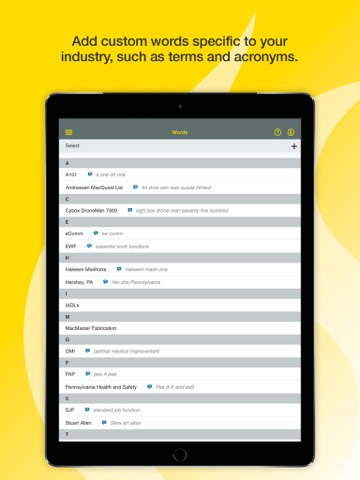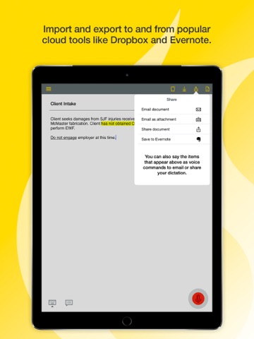 • Need to fill out forms from the road? Easily create form-based templates using Dragon Anywhere’s auto-texts feature and create and fill out forms, such as client in-take forms, and even navigate field to field by voice commands.