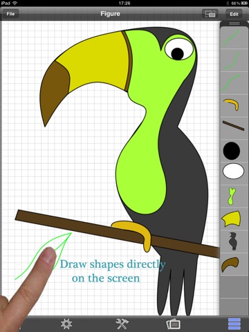 The program allows you to draw graphic shapes directly on a sheet of paper. The new way to create vector graphics, graphic shapes are drawn with his finger on a piece of paper they do not have to pre-select from a limited list.