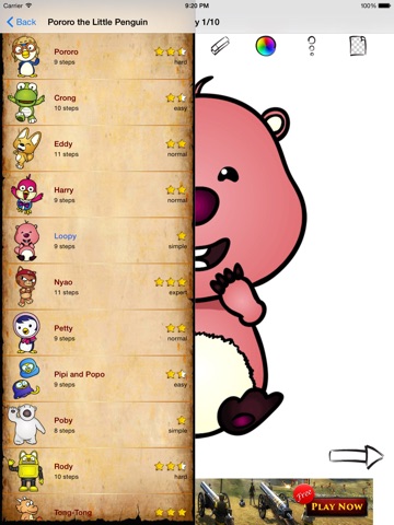 With Easy Draw: Pororo Friends application you will draw Crong, Loopy, Pororo very easy and very similar to original.