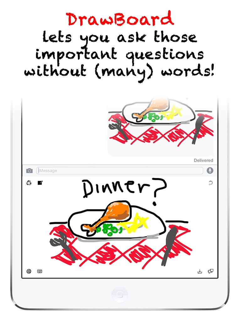 With DrawBoard, a picture says a thousand words... or nothing at all! Brighten someones day with a doodle to make them smile! Do a quick sketch while youre waiting for a reply! Or get your point across in a colourful way! Be creative!