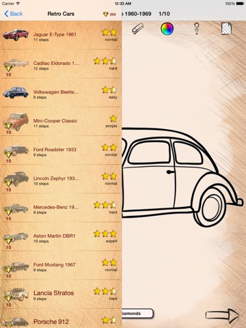 Even if you never tried drawing Retro Automobiles in your life - with our app you will get sure that is more simple and funny way! The choice to draw will astonish you! Popular drawings of Old School Cars as Jaguar, Volkswagen Beetle or Mini-Cooper Classic are waiting here.