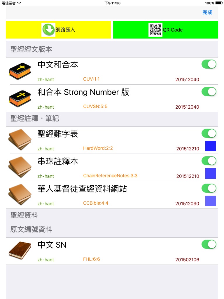 目前可網路匯入的聖經版本: