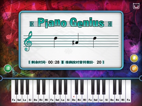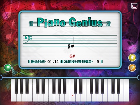 当你看到音符出现在 Dream Cheeky Piano Genius 应用程式里的五线谱上,你需要在你的 iPlay Piano 按下正确的琴键 。 若你不懂,有两种方法取到提示。你的速度越快,越多的音符将会出现。