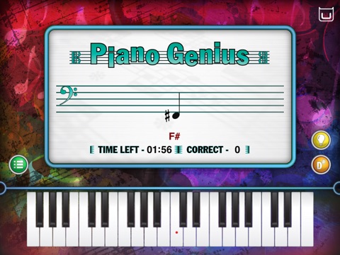 When you see a note appear on the music bars in the Dream Cheeky Piano Genius app, you need to play the correct key on your iPlay Piano. There are two ways to receive hints. The faster you are, the more notes will appear. You have two minutes to find out if you’re a Piano nitwit or genius!