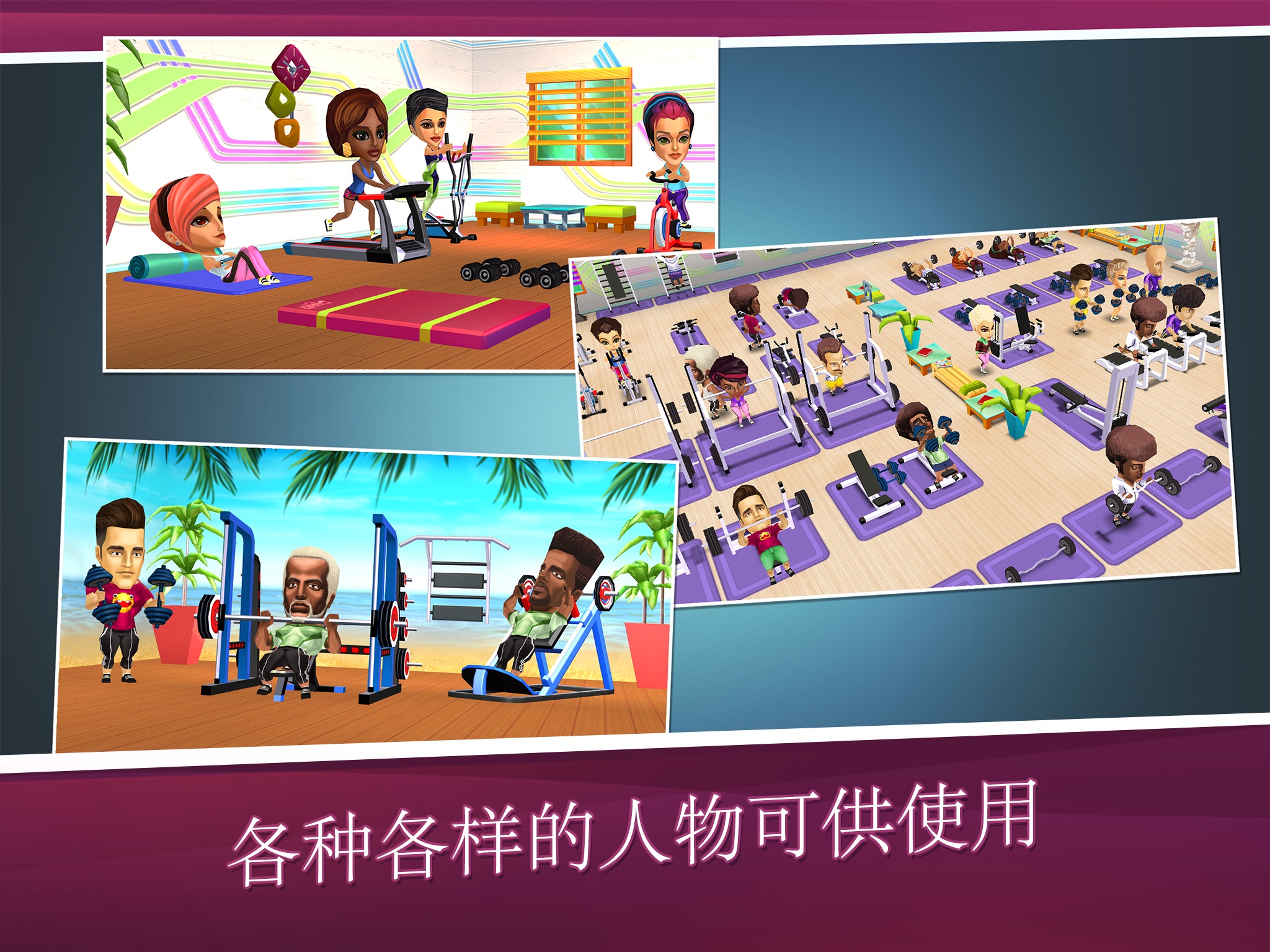 • Build, decorate and manage your own gym in stunning 3D graphics!