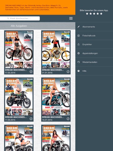 Von der Sache ist alles prima, nur habe ich bei meinem iPad Mini folgendes Problem: Wenn ich den Zeitungskiosk länger nicht nutze oder ihn in der Multitaskleiste beende, crasht die App. Das zeigt sich daran, dass ich das Magazin erneut nicht mehr öffnen kann. Da hilft dann nur die Deinstallation, gefolgt von einer neuen Installation. Natürlich müssen dann auch alle Ausgaben erneut geladen werden, was total nervig ist und natürlich am Datenvolumen zieht, sofern mal kein WLAN vorhanden ist. Ach, der Wiederherstellungsmodus funktioniert auch nicht. Da kommt immer die Meldung, das die digitale Quittung nicht gefunden werden kann. Parallele Nutzung auf iPad und iPhone funktioniert bei mir auch nicht. Wenn das alles gefixt ist, gibt es auch volle 5 Sterne!