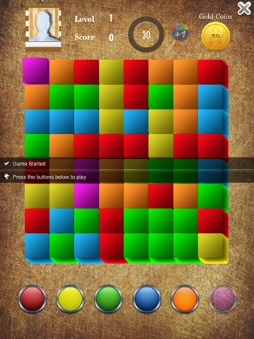 Press the buttons at the bottom of the screen and fill the board with same color cubes. Its very simple