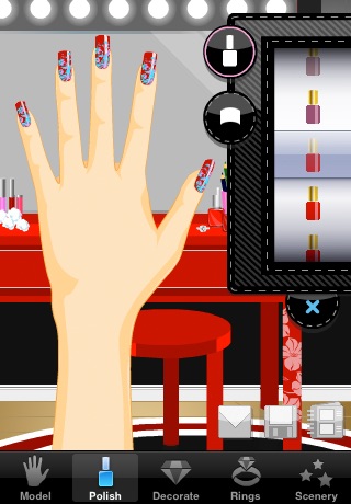 Nail salon is a great app! Wonderful!!! I love it! Its fun, and I can save my designs without filling up my photos. The reason I gave it 4 stars is because it has a bug that keeps me from viewing what Ive saved. I was disappointed that no update came to fix it. Now that I have commented, I fully expect an update.