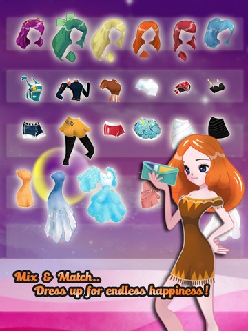 You can customize your girls hair, head accessory, shades, necklace, dress, anklet or shoes. Additional extras are luxurious backgrounds that will introduce a totally new context to your girl gorgeous environment.