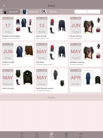 - Save events for the outfits.