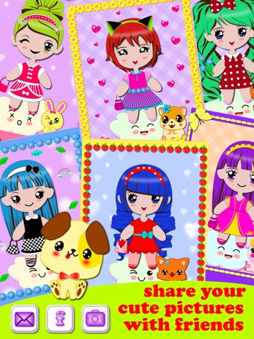 Create your own wonderful kawaii models, beautiful DRESS UPs and great Makeovers with amazing amount of millions combination in free version and even much more of different looks in full version! Customize your artwork with freely placed Stickers and take your cute Pets on top! Realize your dreams and create practically unlimited amount of DRESS UPs which you could then easily share with your family and friends over Email and Facebook! Want to look on your creations later - just store them in your Photo Library!