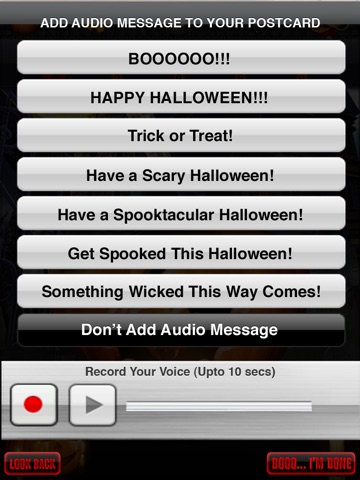 Lifes no fun without a good scare, so this Halloween spook your friends with Punflay’s Dress Jack-o-Ween. This super scary app let’s you go to work on a jack-o-lantern, making it as freaky or as silly as you please! Simply choose a pumpkin in any shape and size; carve it, cut it, gut it (not really, but we like to say that!); add a hat, a cat, or even a eerie dead man and bat. Then, choose backgrounds that will make you shiver. Voila! Jack-o-Ween is ready to scare your friends silly. And for the best part, once you are done dressing up Jack, choose an audio message or record your own, and send it all your friends. Our Halloween messages are guaranteed to have your friends looking over their shoulder this trick or treat season!