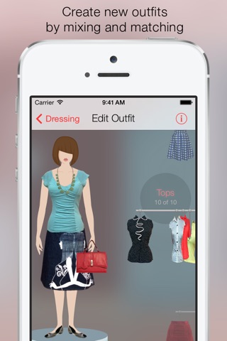 • Create new outfits by mixing and matching any of the clothing, shoes, and accessories in your wardrobe. Simply swipe garments off the racks and onto your mannequin.