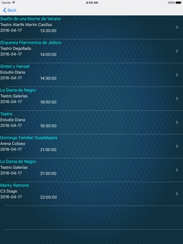 Podrás ver la fecha, hora de salida y lugar de los eventos, y drev te podrá mostrar cómo llegar a ellos desde tu posición actual.