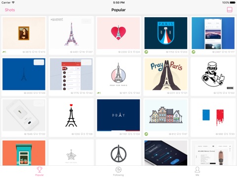You can like, add shots to buckets, and share shots easily without need to navigate back and forth while still keep simple and clean interface, so you can focus on the work of the designers around the world.