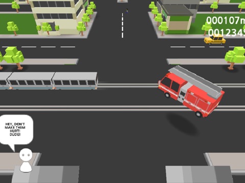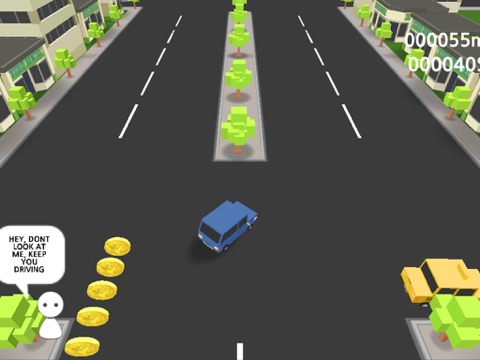 First tap to make your car drift to change the direction, next tap to change again. Avoid the taxi and the man as much in your way!