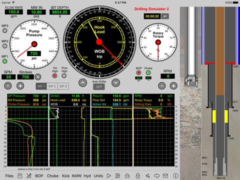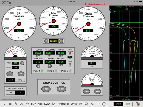This is a basic drilling simulator that simulates drilling operations based in panels for kick detection, shut-in the well, stabilisation of pressures and the choke operations during the well control operations using a hydraulic choke panel simulator.
