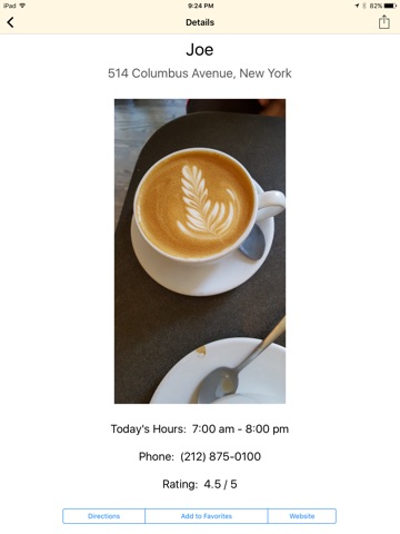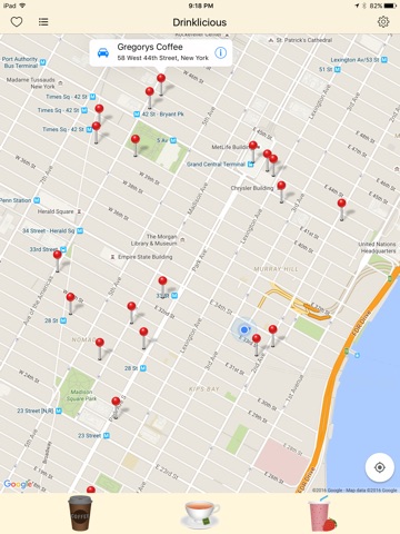 Select coffee, tea or smoothies and Drinklicious will locate these items and display them on an interactive map around your current location. Tap any result to get full details.