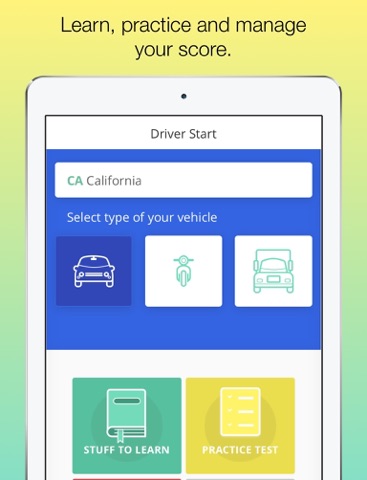 With our amazing free app, car, motorcycle, and CDL permit test questions are available for all 50 states: